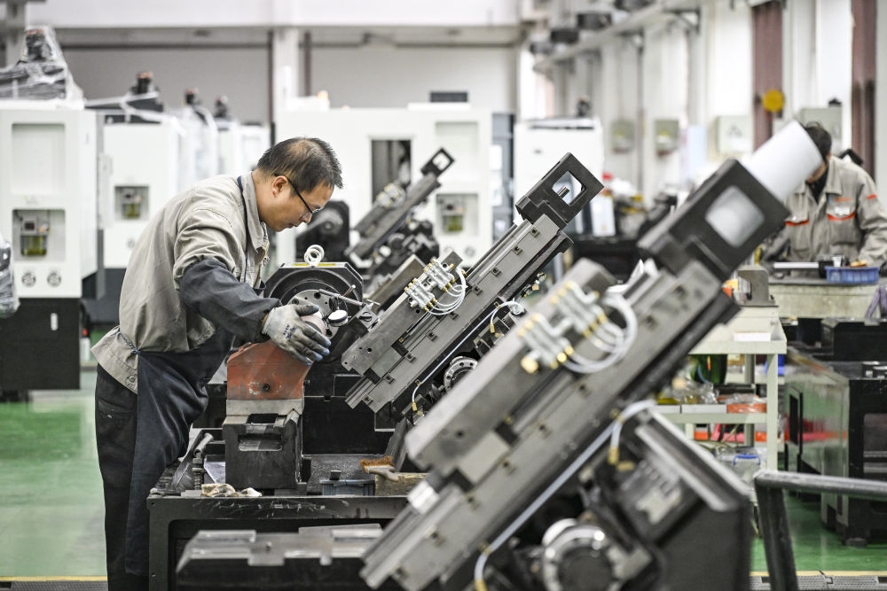 工人在重慶宏鋼數控機床無限公司總卸車間功課。新華社記者王全超 攝